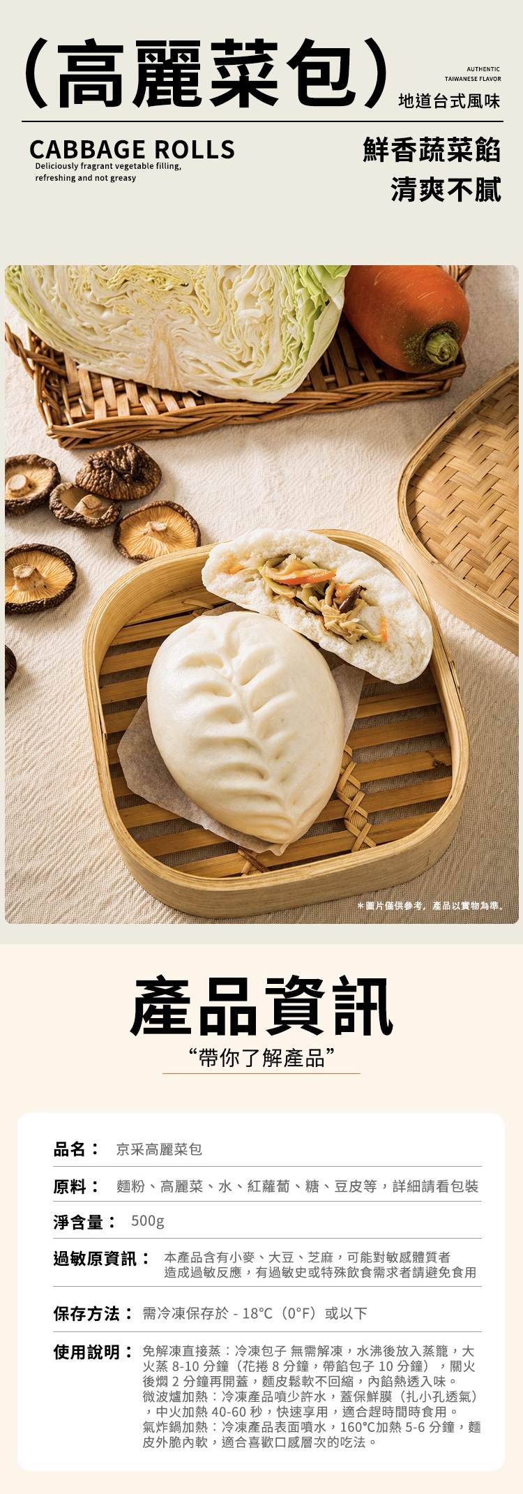 【京采】高麗菜包(全素) 4入 560g【Jingcai】Cabbage Buns (Vegetarian) 4 pieces 560g