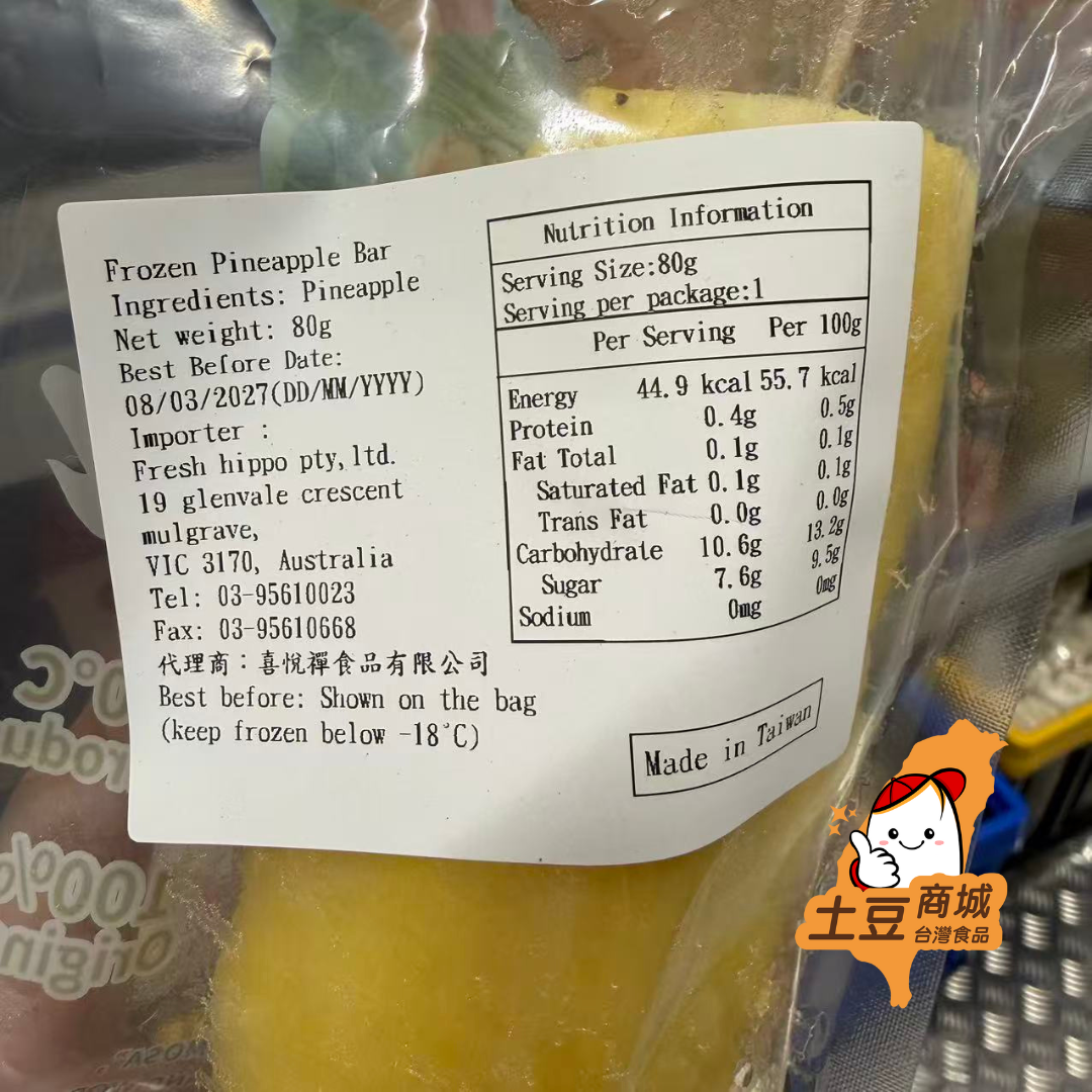 Special Features: Made with carefully selected Taiwanese pineapples, these thick, sweet fleshes are frozen to lock in freshness and provide a refreshing and cooling treat.