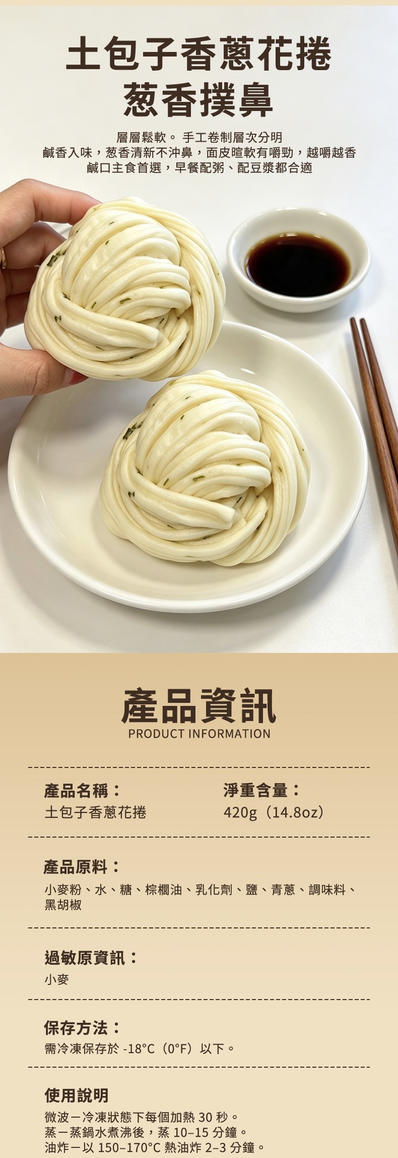 【土包子】香蔥花捲(6入) Scallion Flower Rolls (6 rolls) 420g