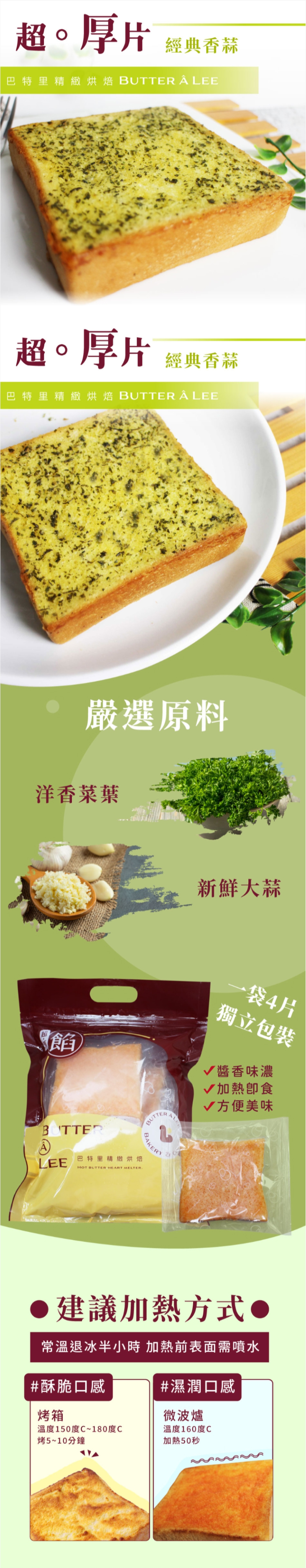Special Features: Combining the ultimate deliciousness of Taiwanese baking techniques, this product boasts a rich garlic aroma and a satisfyingly thick texture. Each slice weighs 100g and is paired with fresh minced garlic and creamy rich butter, ensuring every bite is bursting with classic garlic flavor. Perfect for enjoying on many occasions!