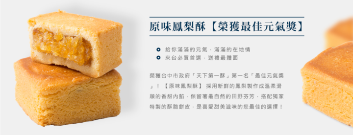 特色介紹:每一塊鳳梨酥都以優質鳳梨作為主要原料,並搭配精選的小麥粉、奶油和糖製成。酥脆可口的外皮包裹著鳳梨內餡,入口即化,鳳梨的香氣和甜味瞬間爆發,留下難忘的味道。