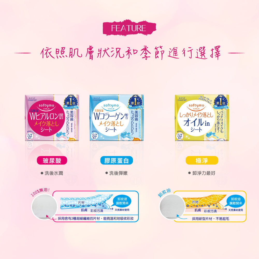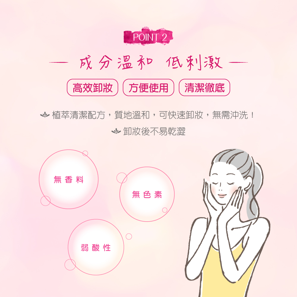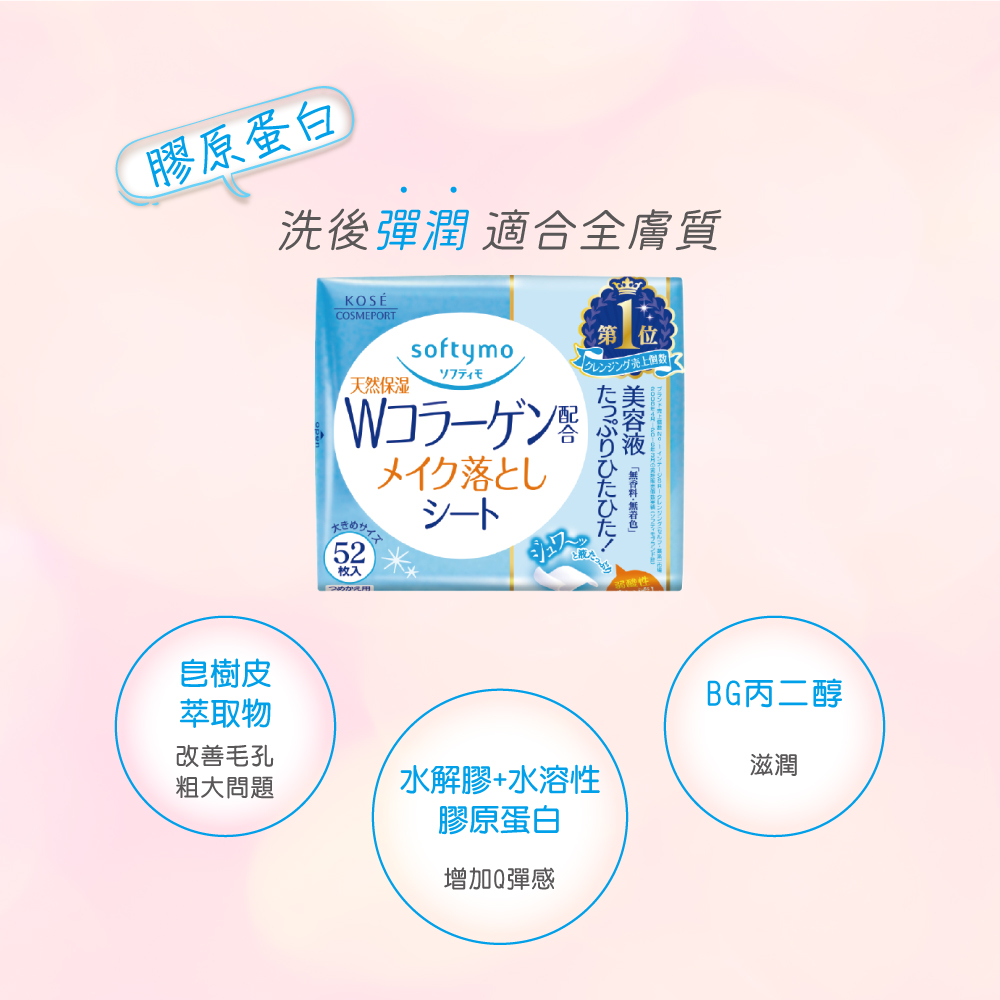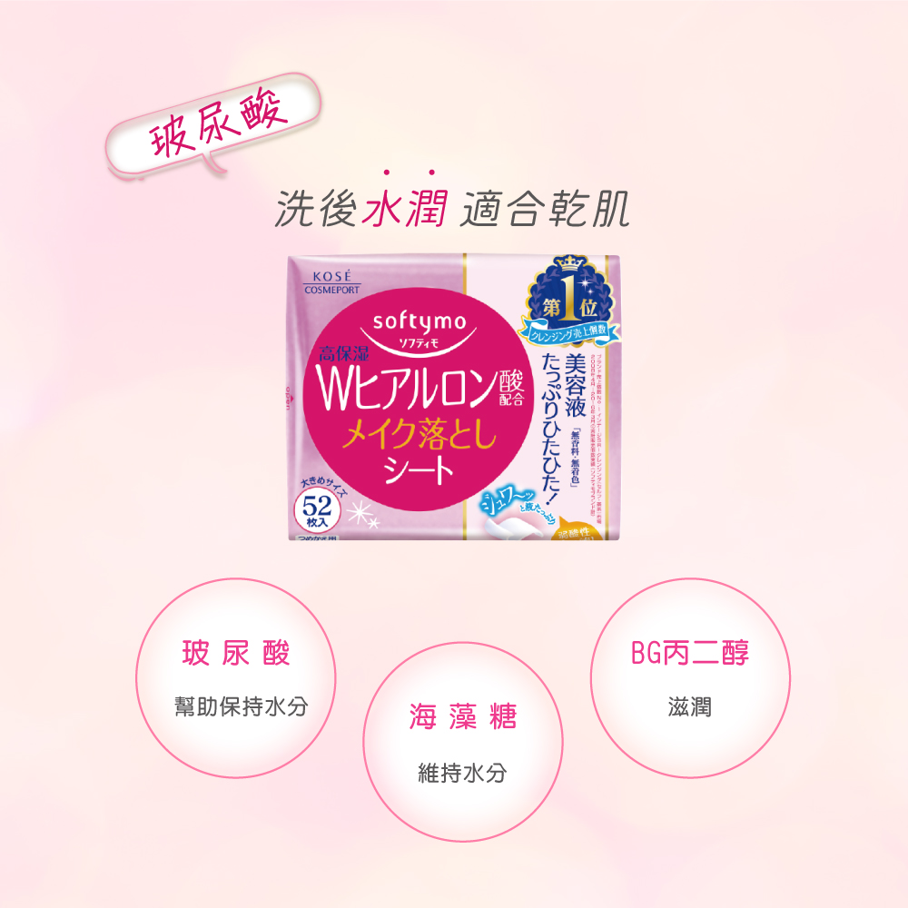 Product Specifications: 52 sheets per pack. Features: Made with microfiber cloth, smooth and skin-friendly, gently removes mascara, eyeshadow, and lipstick. Plant-based cleansing formula leaves skin feeling soft after makeup removal.